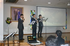 本日の「文化公演」は壮年部担当。3人の兄弟が可愛らしいお子さんの写真を背景に「HOME」という曲を働くお父さんの情感たっぷりに歌い上げてくれました。