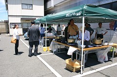 また、教会に隣接する駐車場ではテントが張られ、壮年メンバー手作りによる「焼きそば」、「みそおでん」、「りんご酢ジュース」がふるまわれ、口にされた方々から「とってもおいしい」と喜ばれる声が聞かれました。
